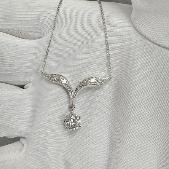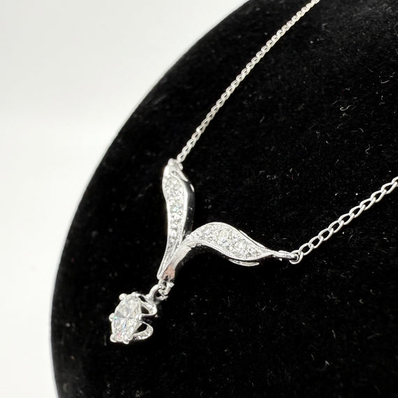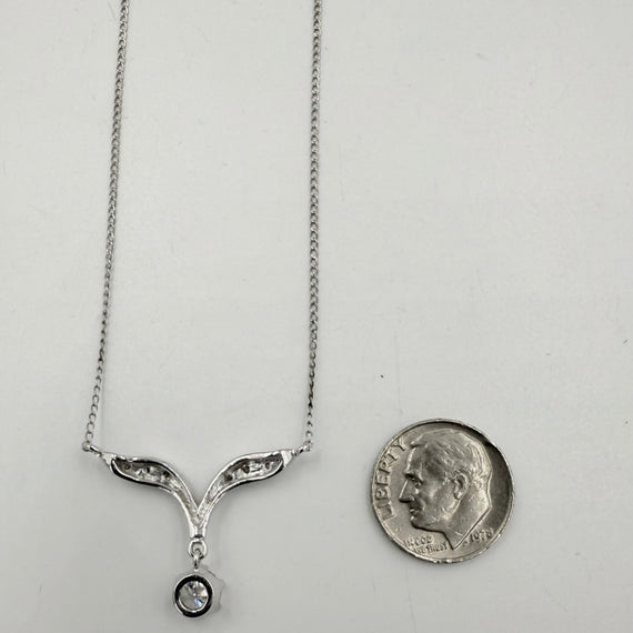 1950s Vintage Diamond Drop 14k White Gold Necklace.