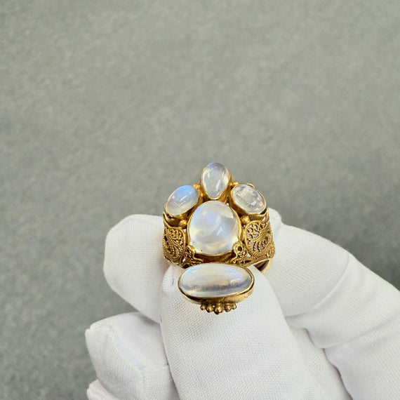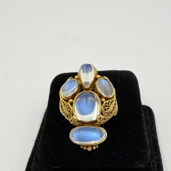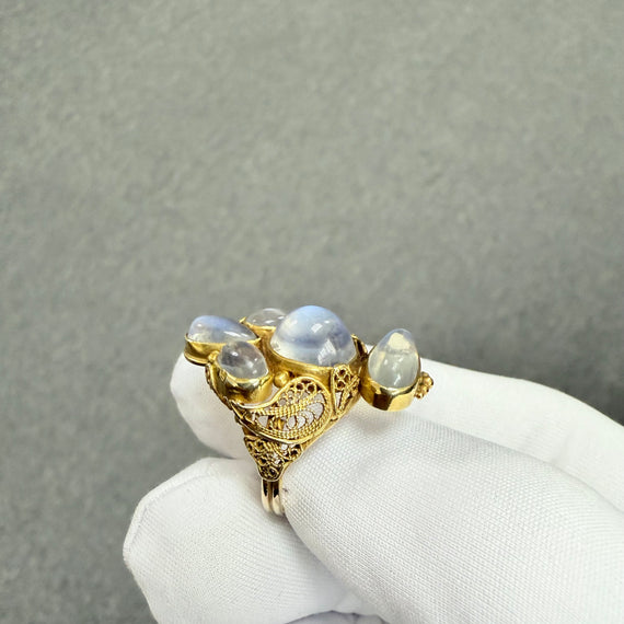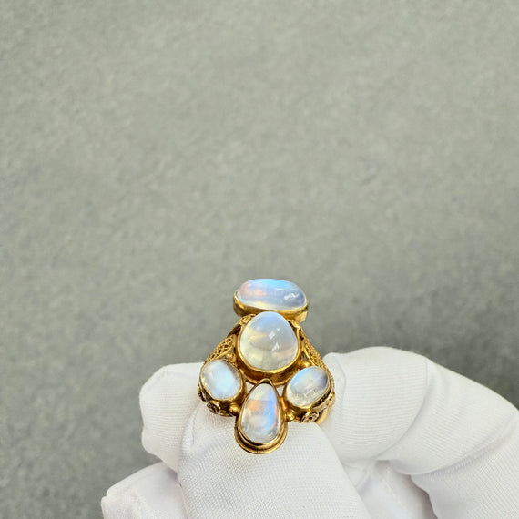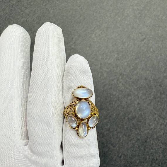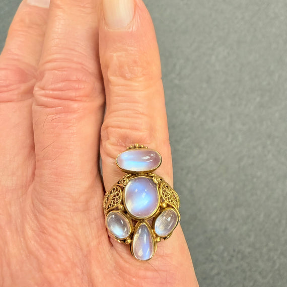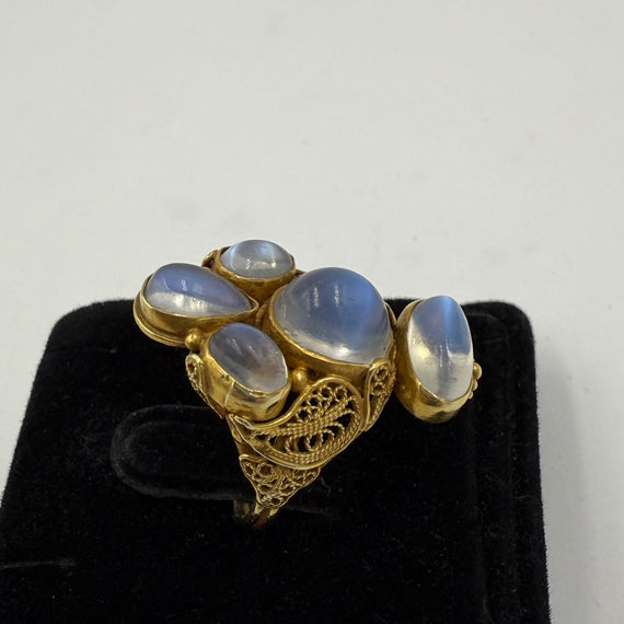 Arts and Crafts Moonstone 14k Yellow Gold Ring Circa 1915.