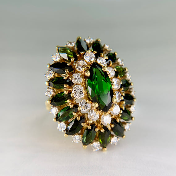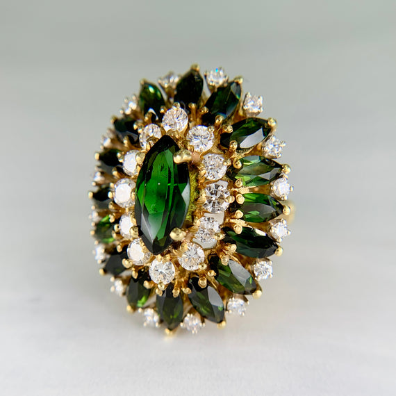 Cindy Royce Green Tourmaline Diamond 18k Yellow Gold Cocktail Ring Circa 1980s