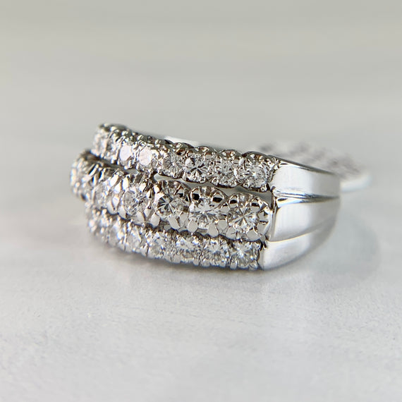 1950s Three Row Diamond White Gold Band Ring.