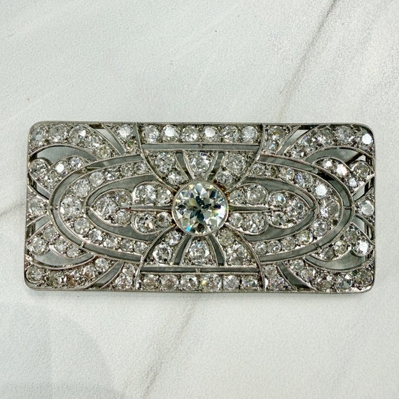 1925 Art Deco Old Cut Diamond Brooch Platinum