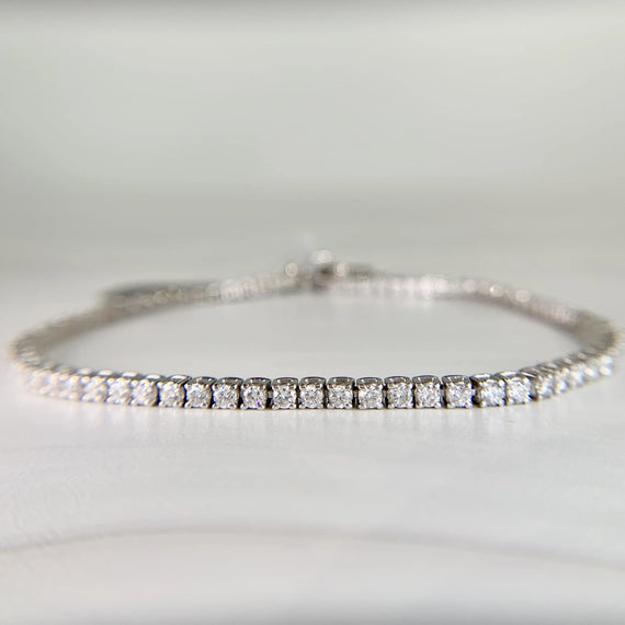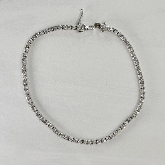 Classic and sleek diamond tennis bracelet with lively white diamonds. In excellent condition.