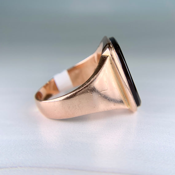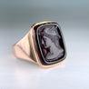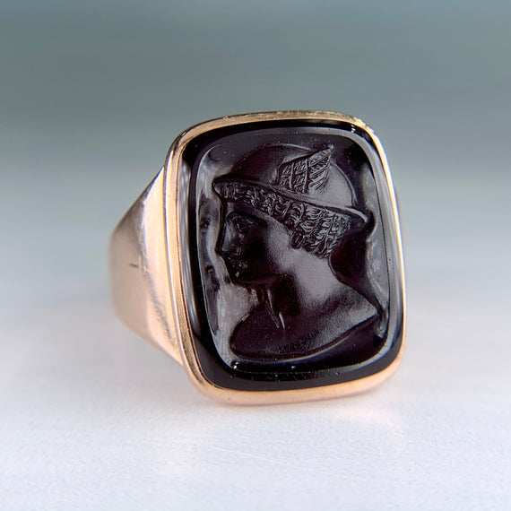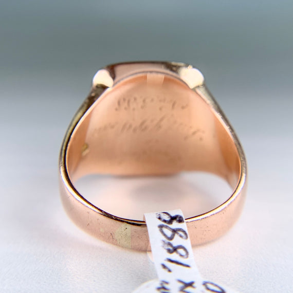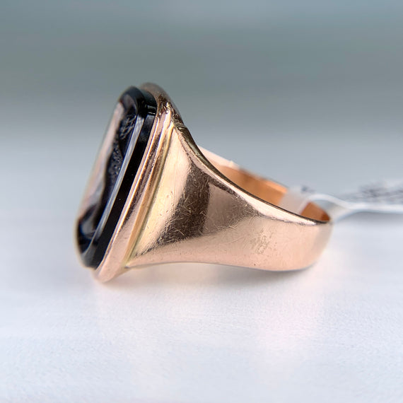 Antique Engraved 1888 Sardonyx Intaglio Ring 14k Yellow Gold