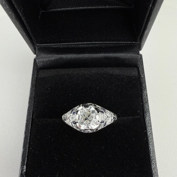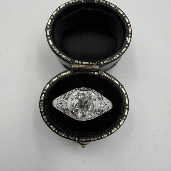 Art Deco 1 Carat TW Diamond 18k White Gold Engagement Ring Circa 1925