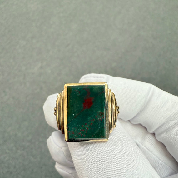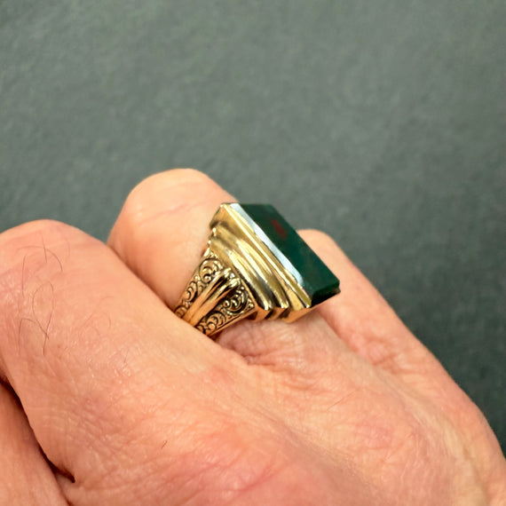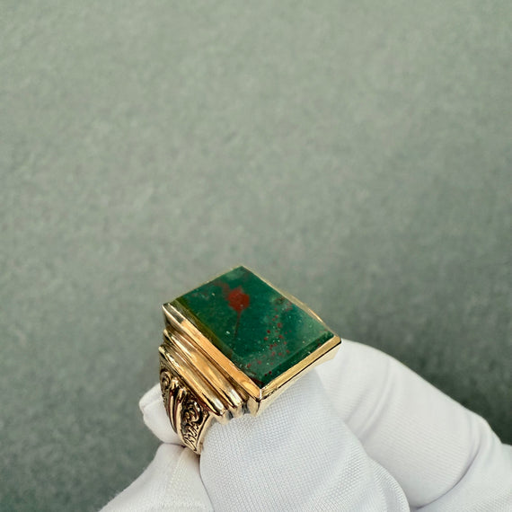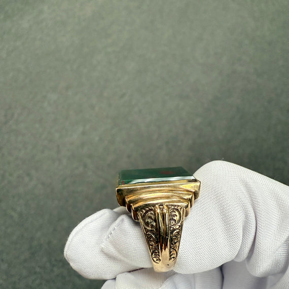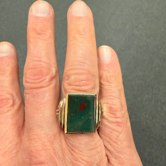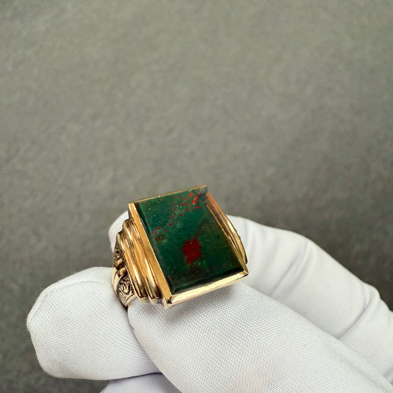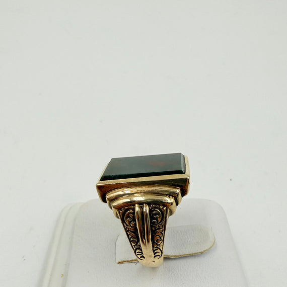 Gents Vintage Bloodstone 10k Yellow Gold Ring Circa 1930s.
