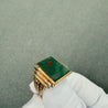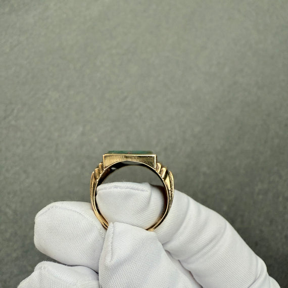The Gents Vintage Bloodstone 10k Yellow Gold Ring was made in the 1930s. It's a rectangular design with great details on the side of the shank. The bloodstone is quite impressive with its distinctive red spotting and beveled edges. It's a very handsome ring! Makes a great gift for someone or perhaps yourself.