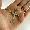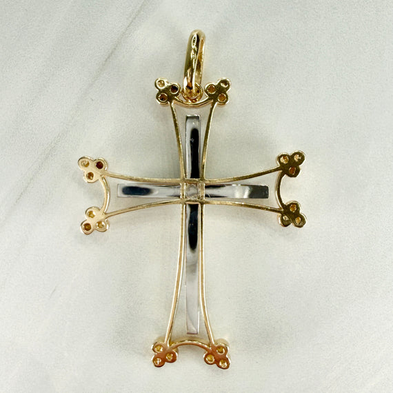 Large Two Tone Diamond Cross Pendant 14/18k Gold